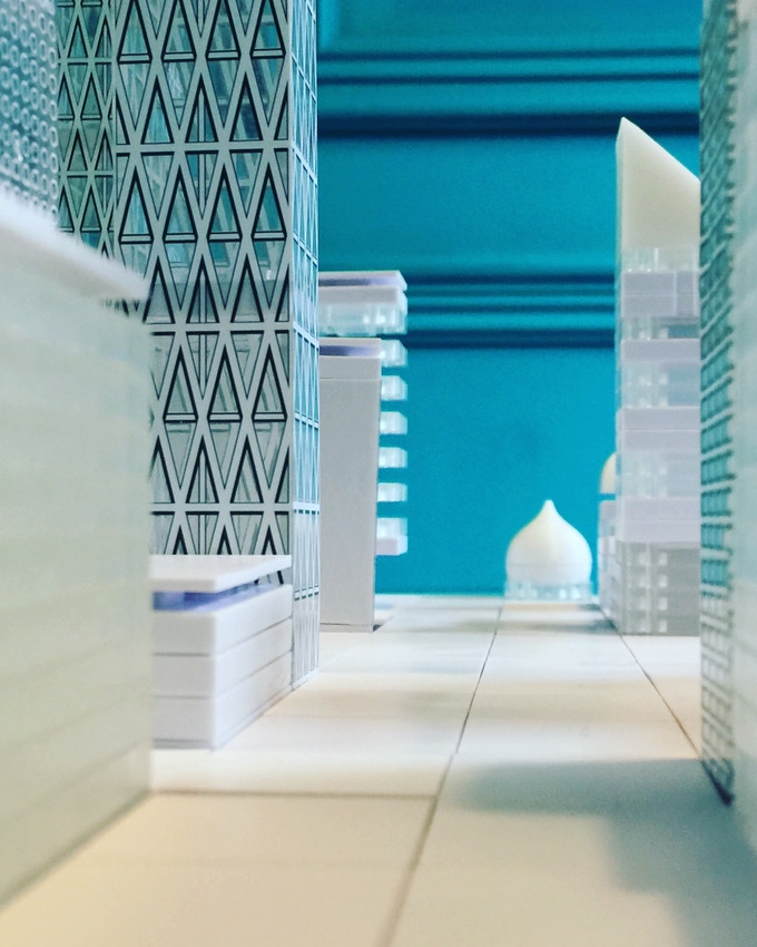 The finished models are a piece of design in their own right. Inspired by minimal art and design, each kit is made up of unique components including a variety of different tile shapes that represent iconic architecture from around the world.