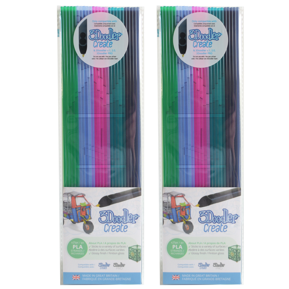 3Doodler Create PLA Plastic Clearly Springtime – 2Pack – For those who love the look of the translucent and glossy finish on their doodles the key to creating those beautiful designs are PLA plastics! It cools at a lower temperature and has the ability to stick to paper glass cloth and metal surfaces. You can even manipulate the plastic for a few seconds right after doodling. The possibilities are endless! Explore the wide variety of 3Doodler plastic refill colours and finishes including clear metallic sparkle! PLA plastics are compatible with the 3Doodler Create+ Create 2.0 and V.1 3D printing pens. In addition, it is easy to clean up and safe to Doodle on almost any material without damage. Available in single & mixed colour pack containing 25 strands and single colour tubes containing 100 strands.