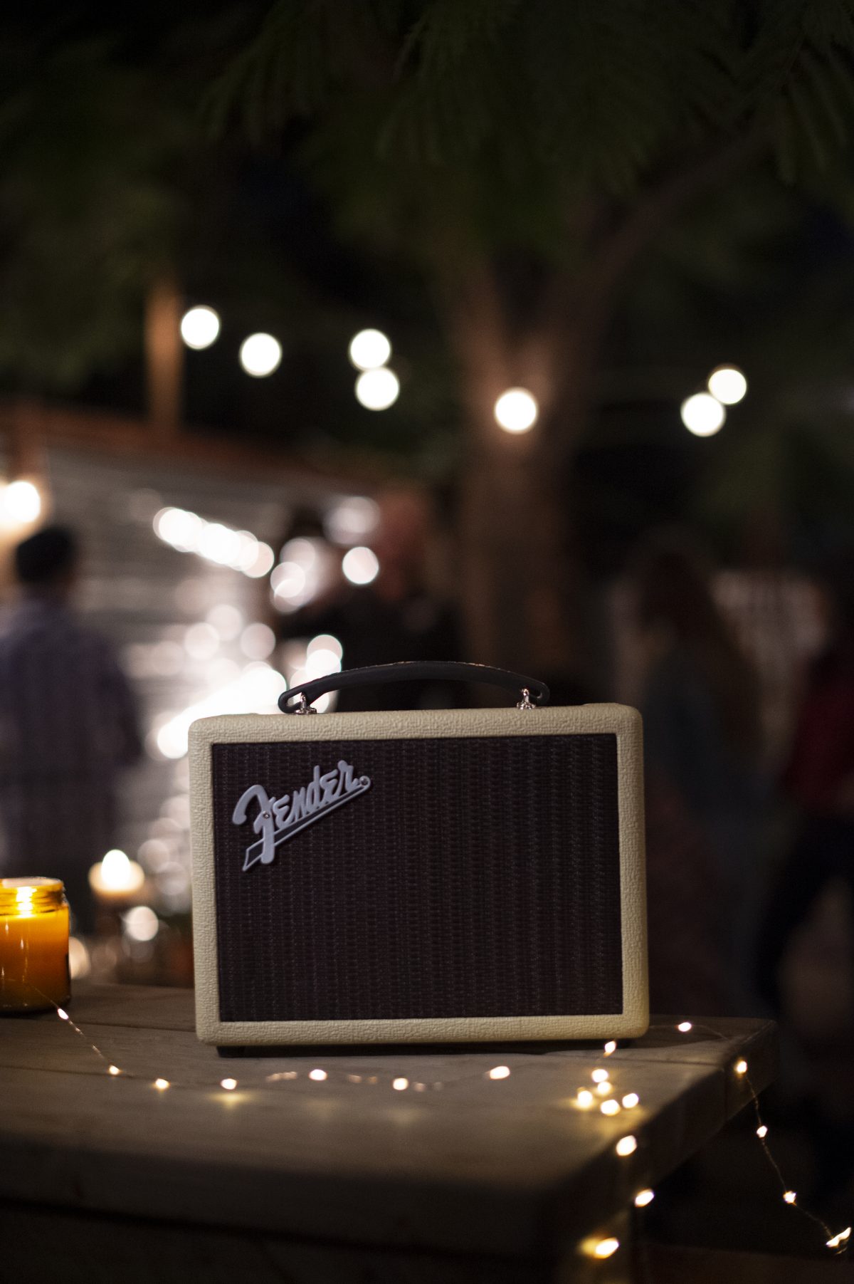 The Fender Indio Bluetooth Speaker takes its aesthetic cues from some of the other classic forms in its class. Its amp-style knobs and toggle switch textured vinyl covering and speaker grille cloth are some of the authentic appointments that blend in any room decor.